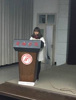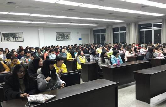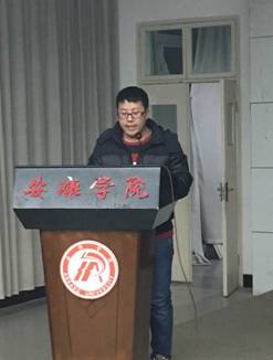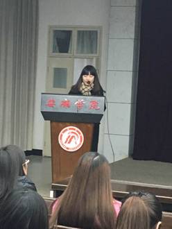 1月5日晚,我院在图书馆六楼报告厅举行了2015年教育实习工作总结暨毕业论文工作会议,副院长张哲华,英语教研室主任王刚、带队教师刘荣华、王欢、汪琦、肖雯及2016届全体英语师范生参加了此次会议。会议由英语教师教育教学团队负责人王欢主持。