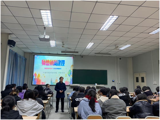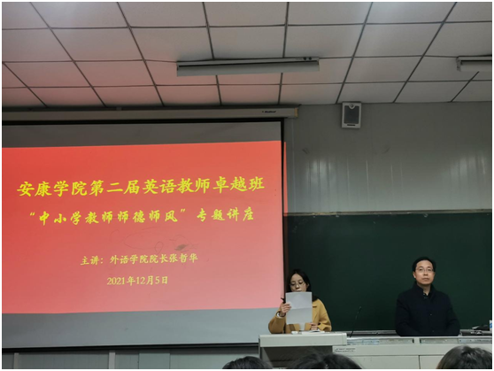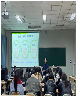张哲华院长从教师师德师风的解读、违反教师师德师风的现象及根源、师德相关法律法规以及英语师范生教师职业规划四方面进行了详细深入的讲解。“学高为师,德高为范”、“教育之根味苦,教育之果甘甜”,张院长指出,在在新的时代条件下,身为师范生,我们要紧跟习近平总书记号召,坚定理想信念,培养道德情操,练就扎实本领,心怀仁爱之心,争做“四有”好老师,做好学生的“四个引路人”;强调英语师范生要树立优秀的师德,做到爱岗敬业,教书育人,为人师表。