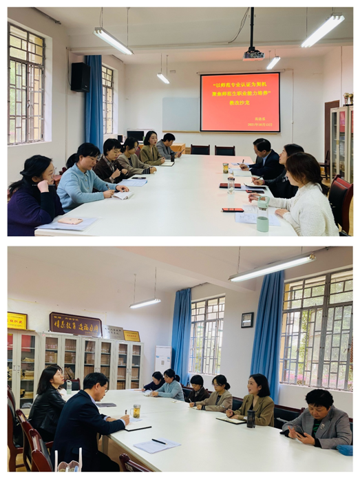 10月13日下午,ok1188诸侯快讯官方英语系在6109举行了主题为“以师范专业认证为契机 聚焦师范生职业能力培养”的教学沙龙活动。沙龙由英语系主任周玫主持,ok1188诸侯快讯官方院长张哲华、副院长胡卫卫及英语系全体教师参加。