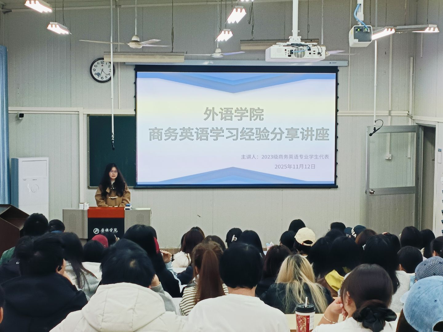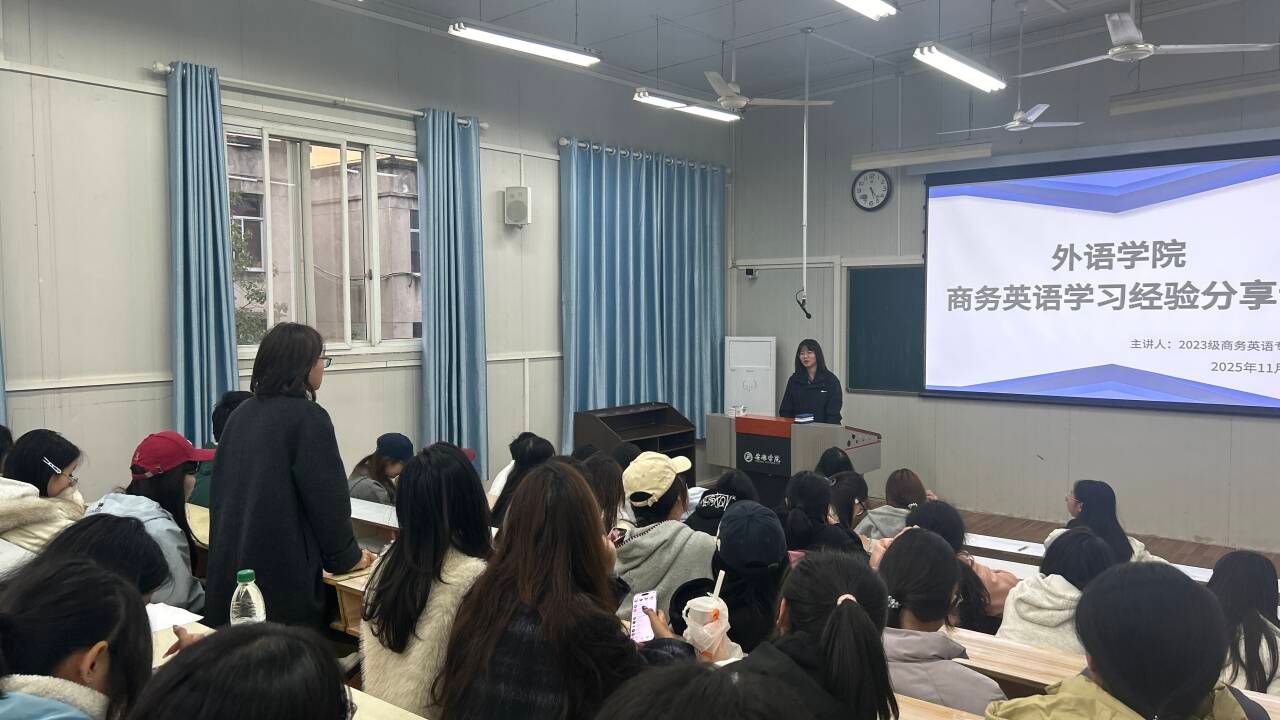 为切实帮助2025级商务英语专业新生快速适应专业学习、明确发展方向、提升学习实效,11月12日下午,ok1188诸侯快讯官方在6405教室成功举办优秀学生代表学习经验分享会。本次活动邀请2023级徐舒雨、李东玫、董晓悦、王怡轩四位高年级优秀学生代表,围绕专业认知、学习提升、就业优势、未来规划四大核心议题,为新生提供系统性、专业化的经验指导。