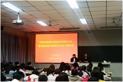 此次讲座是2021年度ok1188诸侯快讯官方加强课程思政示范课和双师课程建设的重要举措,旨在通过校内外师资共同体打造一流课程,培养合格中学英语教师。本次活动将进一步加深我院师范生对教师职业尤其是班主任岗位角色、意义、工作内容和方法的认识,提高师范生愿做、能做、会做班主任工作的能力,为师范生未来教师职业发展奠定必要的基础。