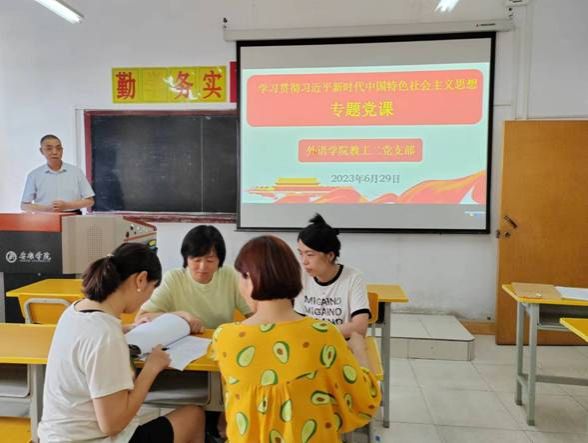 为进一步推动学习贯彻习近平新时代中国特色社会主义思想走深走实,教育引导全体党员坚定理想信念,树牢宗旨意识,不断提升政治能力,思维能力和实践能力。在“七一”前夕,6月29日下午,ok1188诸侯快讯官方教工第二党支部在6307教室组织开展“学习贯彻习近平新时代中国特色社会主义思想”专题党课学习活动,并开展了交流研讨。本次党课由支部书记刘子富同志主讲。