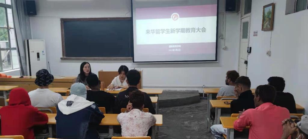 9月1日,国际教育学院面向全体在校留学生举行新学期“开学第一课”,重点为各专业留学生解读新学期课程安排、学分设置、授课方式等内容,并对2022届毕业生进行毕业指导。副院长陈蕾、学工办主任李泊霖参加会议。