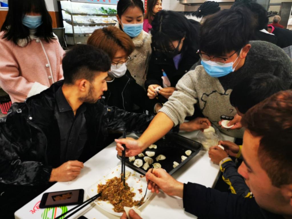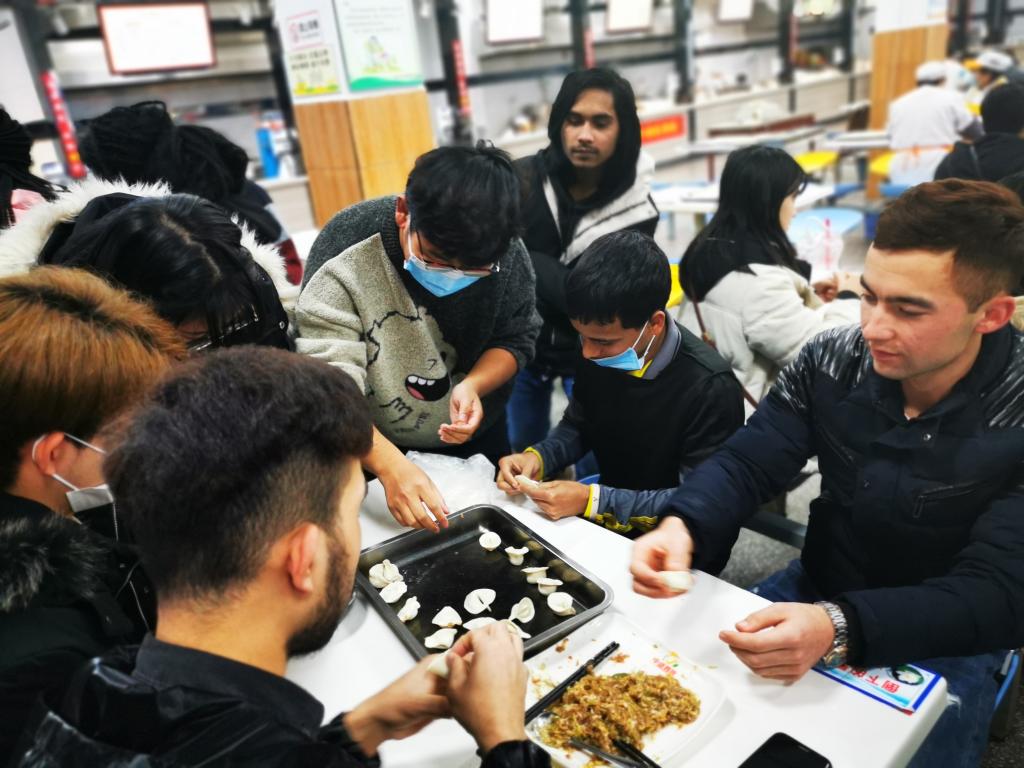 活动伊始,国际教育学院副院长陈蕾为师生们介绍了冬至的传统习俗和文化渊源,餐厅负责人现场为大家示范了包饺子技法,随后师生们便积极踊跃地投入到活动中。大家纷纷大展身手,拿出看家绝活,柳叶饺、东北饺、元宝饺、月亮饺……一个个精致别样的饺子陆续呈现在大家眼前,大家有说有笑,其乐融融,放松了身心、交流了情感。