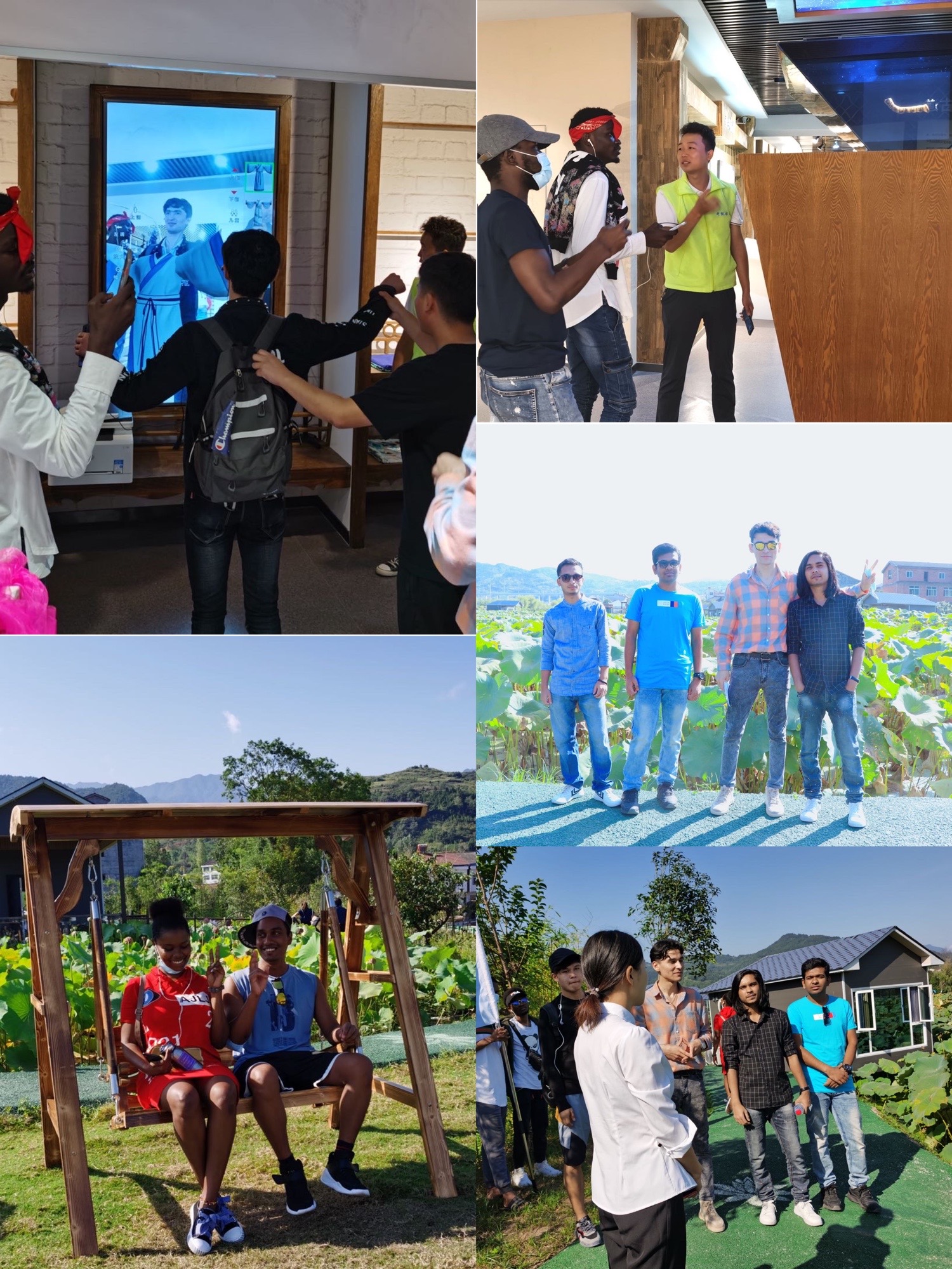 留学生在老师带领下抵达池河镇,亲历悠久的蚕桑文化。池河镇古称直城,是古子午道上的重要城镇,为区域性交通枢纽,也是西北蚕桑第一大镇,著名的国家一级文物——汉代鎏金蚕出土于此。池河镇有史可证的兴桑养蚕文化已有2000多年的悠久历史。留学生一行参观了“荷塘月色”与“沧海桑田”生态农业区,感受荷塘与桑海之美,观特色民居,体验桑海步道及丝路回廊的风情;后前往金蚕之乡展览馆,通过聆听讲解、观看视频、场景体验等方式,了解当地兴桑养蚕的悠久历史和风土人情。