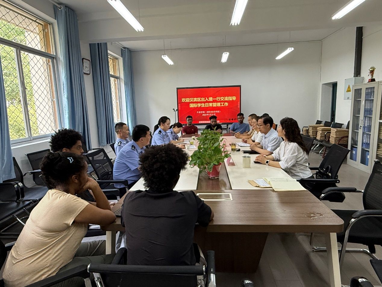 会议伊始,张哲华代表学院对汉滨分局出入境管理大队的到访表示欢迎,并介绍了学院留学生教育管理总体情况。他强调,学院始终秉持“规范管理、服务育人”理念,致力于为国际学生营造安全、有序的学习生活环境。