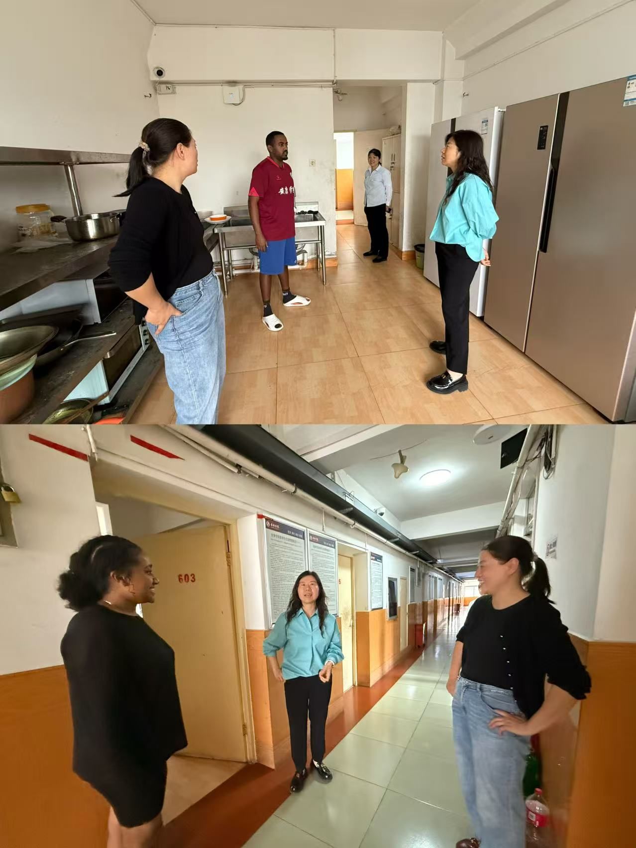为加强五一假期安全管理,落实留学生关怀服务工作,4月29日下午4时,ok1188诸侯快讯官方(国际教育学院)党总支书记、副院长肖红香,副院长胡卫卫,专职辅导员陆传梓一行深入留学生公寓,开展五一假期前安全教育暨宿舍安全检查工作。
