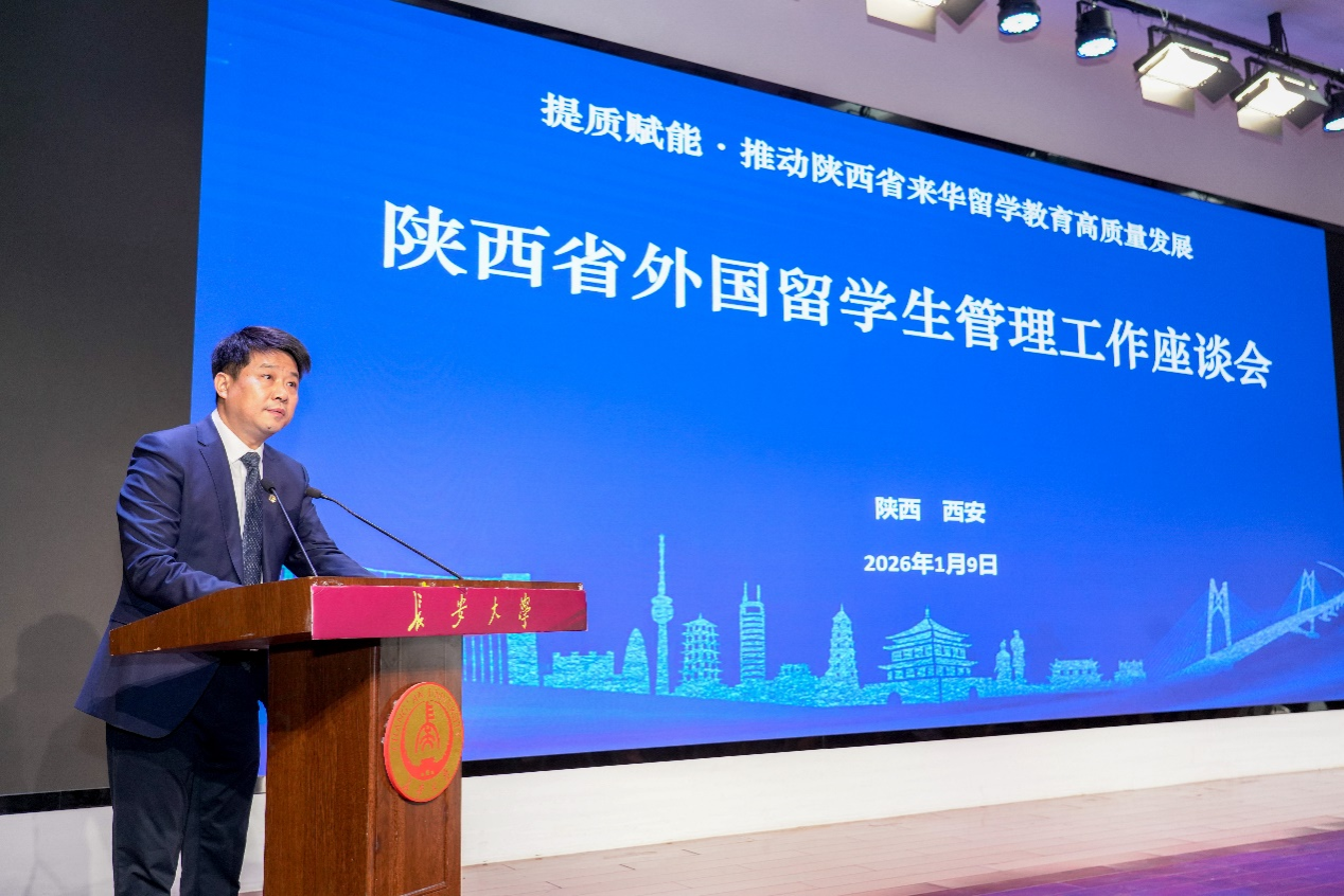 2026年1月9日,陕西省来华留学高质量发展研讨会在长安大学南校区学术交流中心举行。会议以“提质赋能,推动陕西省来华留学教育高质量发展”为主题,议程紧凑丰富、内容务实高效。我院副院长胡卫卫、留学生专职辅导员陆传梓参加会议。